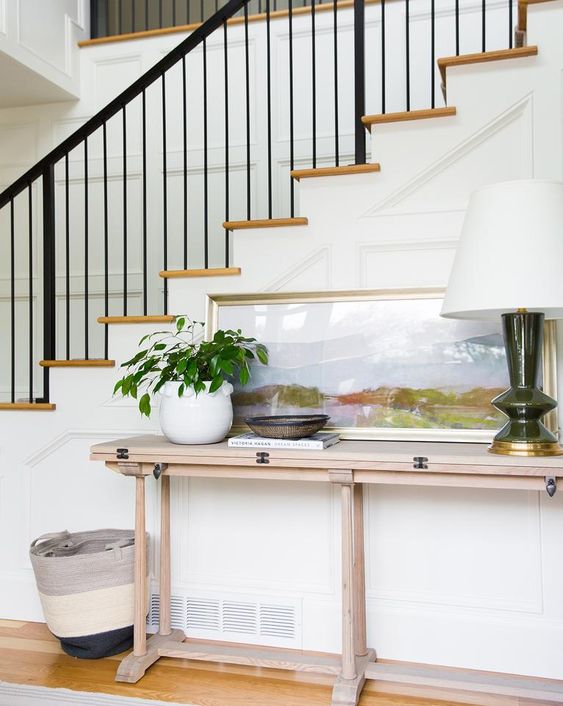 Nada eleva una habitación como la iluminación adecuada, y su entrada no es una excepción. La iluminación en esta área debe ser elegante y funcional. Una lámpara de mesa bien colocada crea una sensación cálida y acogedora inmediatamente al entrar en la casa.