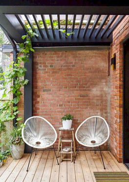 Pueden colocar desde una pequeña mesita donde comer juntos un snack hasta un gran sillón con cojines que inviten a quedarse toda la tarde a ver series. Obviamente habrá que elegir los muebles acorde a la exposición del lugar, si no está en sus planes poner algo que cubra del sol y/o lluvia directo opten por opciones prácticas como el plástico. Si está un poco más resguardado no sean tímidos en jugar con telas y cojines, en el mercado existen materiales lavables de uso rudo que sirven para esto.